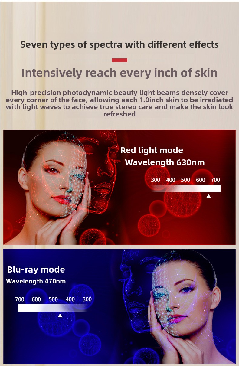 Our Facial acne removal mask harnesses specific wavelengths of LED light, clinically proven to combat acne. Blue light targets and destroys acne-causing bacteria, while red light reduces inflammation and promotes skin healing. This dual-action approach ensures comprehensive treatment for a healthier complexion.